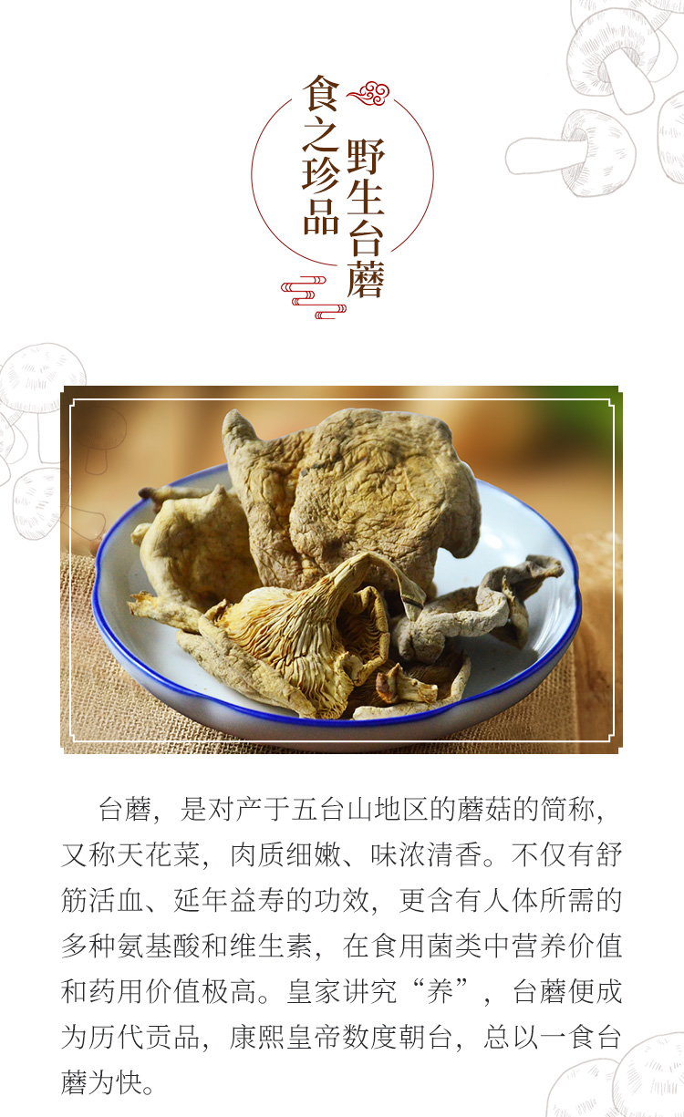 原 ???料:五臺山野生臺蘑、雞油菌、香菇、豆醬、豆靡等。