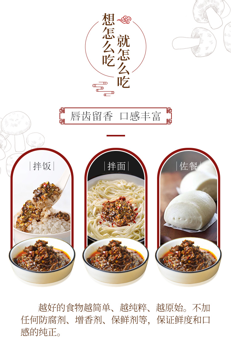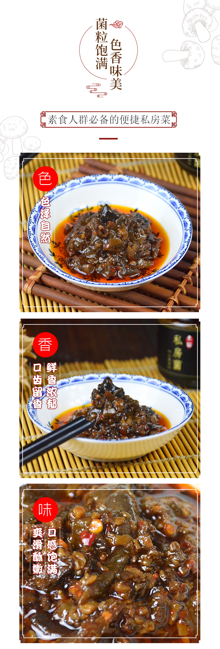 特 ???色:菌香醬香濃郁、咸鮮美味、健康純素。?