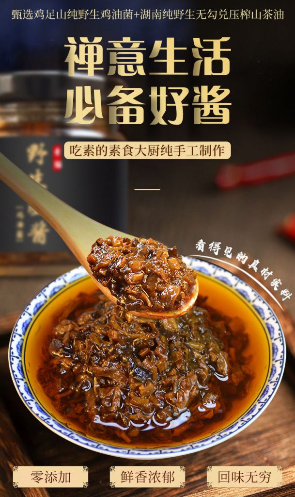 素貓野生菌皇醬(雞油菌)是素貓聯(lián)合廣州素食學(xué)校,在疫情期間的專項(xiàng)研究成果,這款醬保留了素貓產(chǎn)品一慣的特色——純手工、零添加、凈素(無(wú)肉無(wú)蛋無(wú)奶無(wú)五辛),打破了素食食材只能做低端產(chǎn)品的傳統(tǒng)觀念。