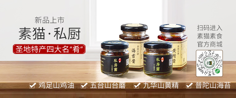 現已成功推出“素貓私房菌(五臺山臺蘑、雞足山雞油菌)”、“香菇豆渣醬(正宗九華山黃精醬、普陀山海苔醬)”等系列健康優質素食食品。